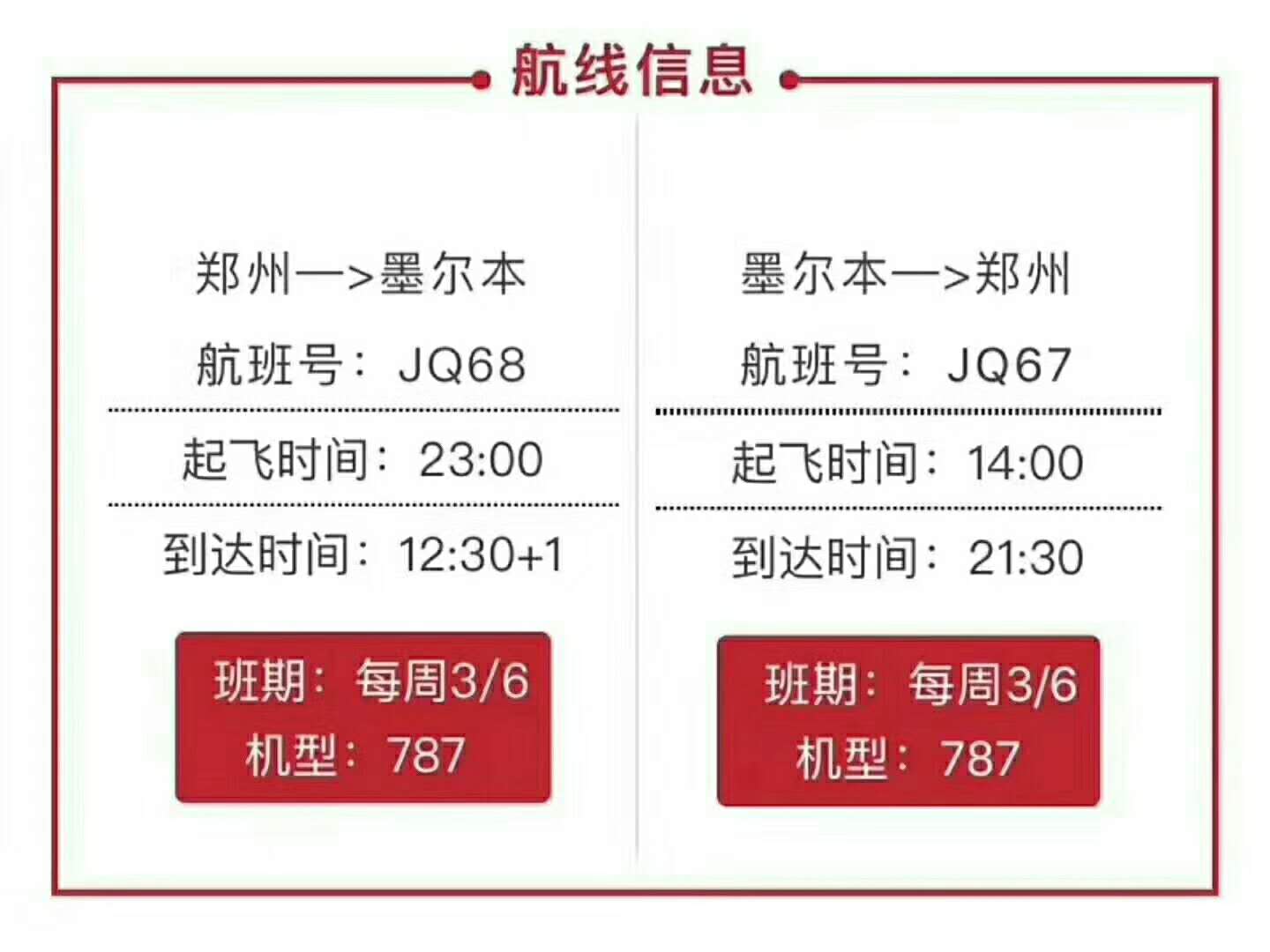 郑州 - 墨尔本直飞航班信息
